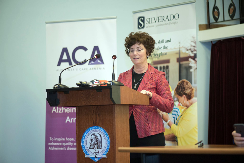 Professor Hovhannes Manvelyan, Head of the Department of Neurology of YSMU, presented a report on “The Problem of Dementia in Armenia”, and Jane L. Mahakyan, President of the “Alzheimer’s Disease Care in Armenia” organization, touched upon the topic of “Memory Loss: what is normal and what is not?”. Specialist of dementia treatment, Victor Mazmanyan, presented a report titled “Care and Hope”.